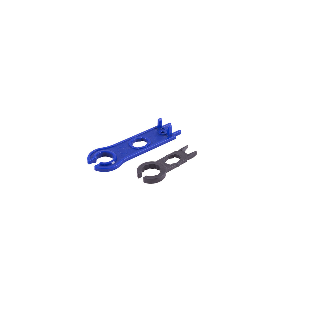 | Opis: | Alat za montažu PV4 fotonaponskih konektora PV4, poznati i pod markom MC4 (Multi Contact), standardni su konektori za fotonaponske sustave. Ovaj set sastoji se od dva alata za montažu i koristi se za zatezanje ili otpuštanje PV4 kabelskih konektora. Umetnite PV4 konektor u središte prvog alata. Drugi alat se zatim može koristiti za jednostavno zatezanje ili otpuštanje kabelske uvodnice. Ako trebate otpustiti mehanizam za zaključavanje dva PV4 konektora, možete koristiti vilice priložene uz alat. Oba alata za montažu prikladna su za PV4 utikače i utičnice. Kompatibilno s: PV4 konektorima, verzija od 1000 V i verzija od 1500 V. Materijal: Plastika Boja: Plava, crna. OPREZ! Nikada ne radite na žicama ili konektorima pod naponom. |